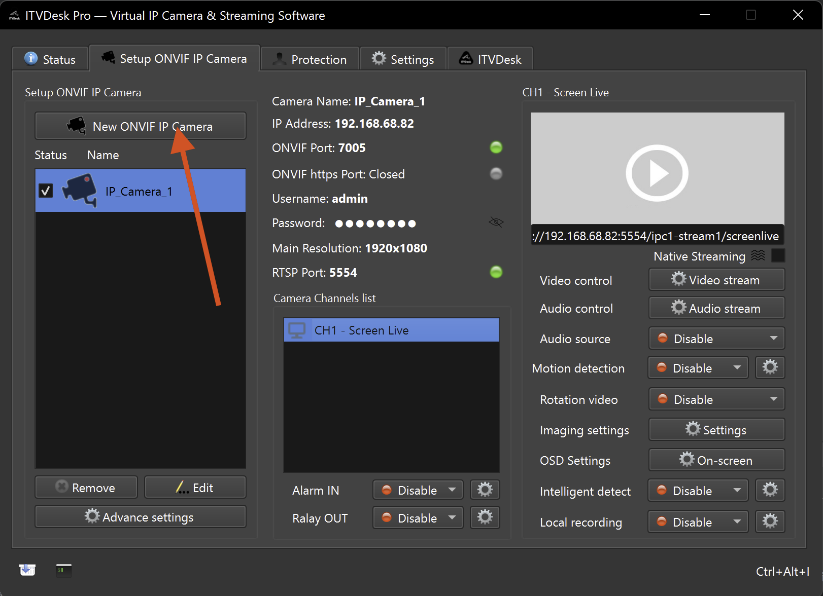 To add your first video source, you first need to create a new virtual ONVIF IP camera.