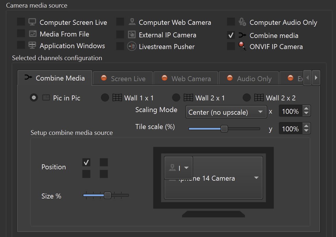 - In Camera Media Source, enable Combine Media
