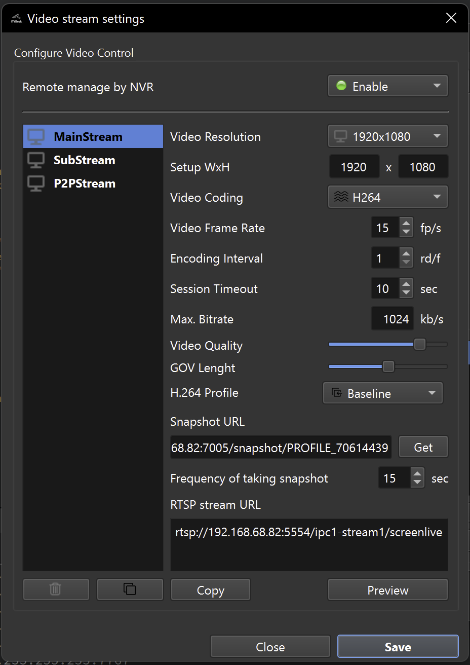 - Video codec (H.264 / H.265 / MJPEG)