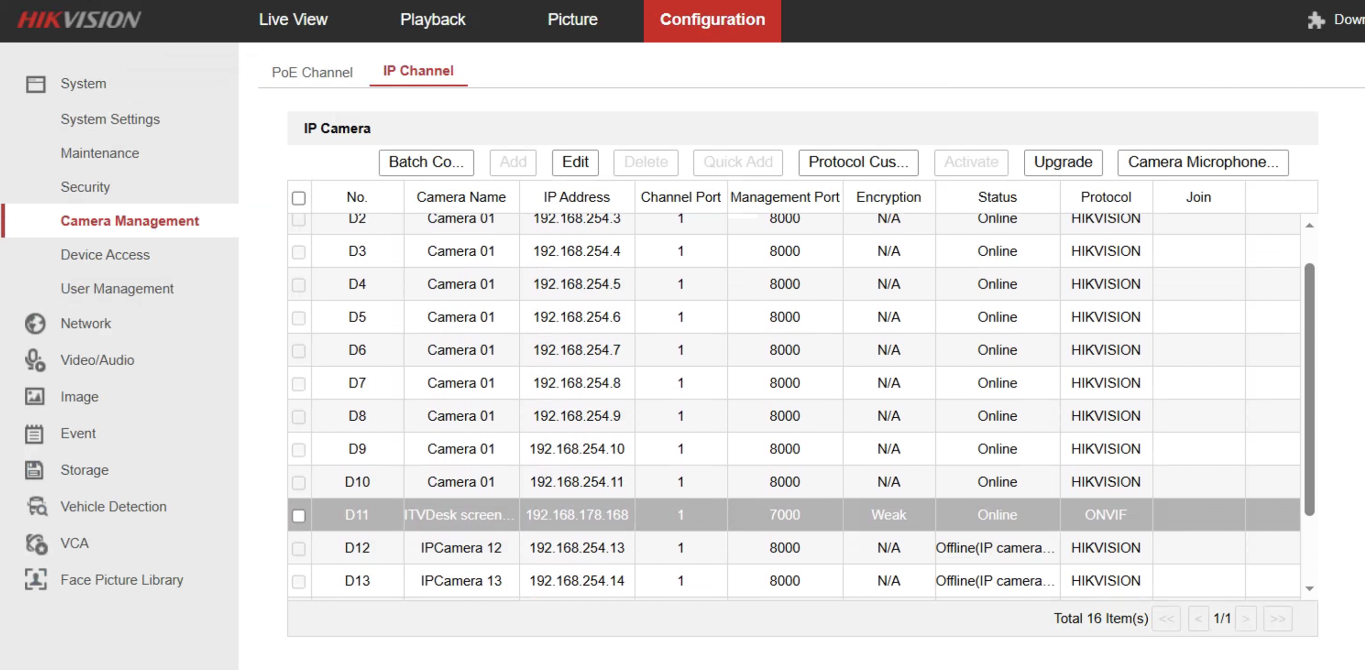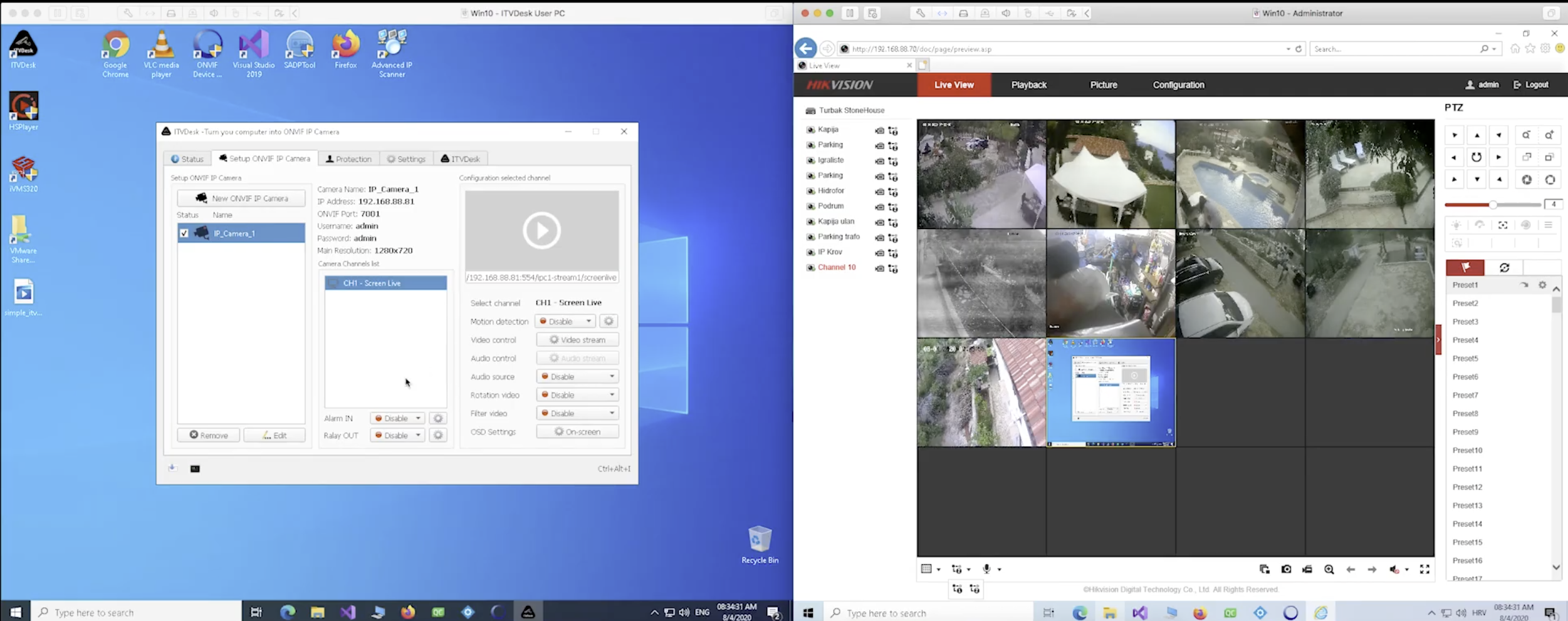 This example demonstrates how to add ITVDesk IPCamera Pro as a virtual ONVIF IP camera to a Hikvision NVR using the standard ONVIF protocol.