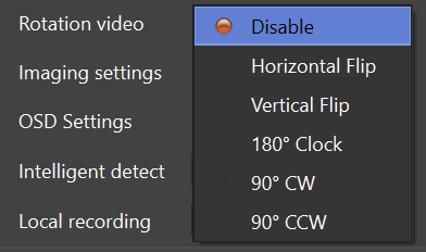 The Rotation Video menu allows changing the orientation of the video stream before it is delivered to ONVIF clients.