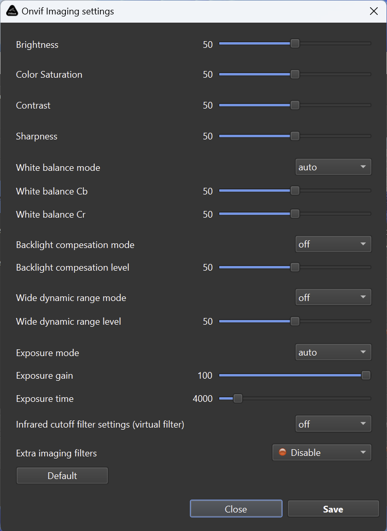 - Settings are exposed consistently via ONVIF