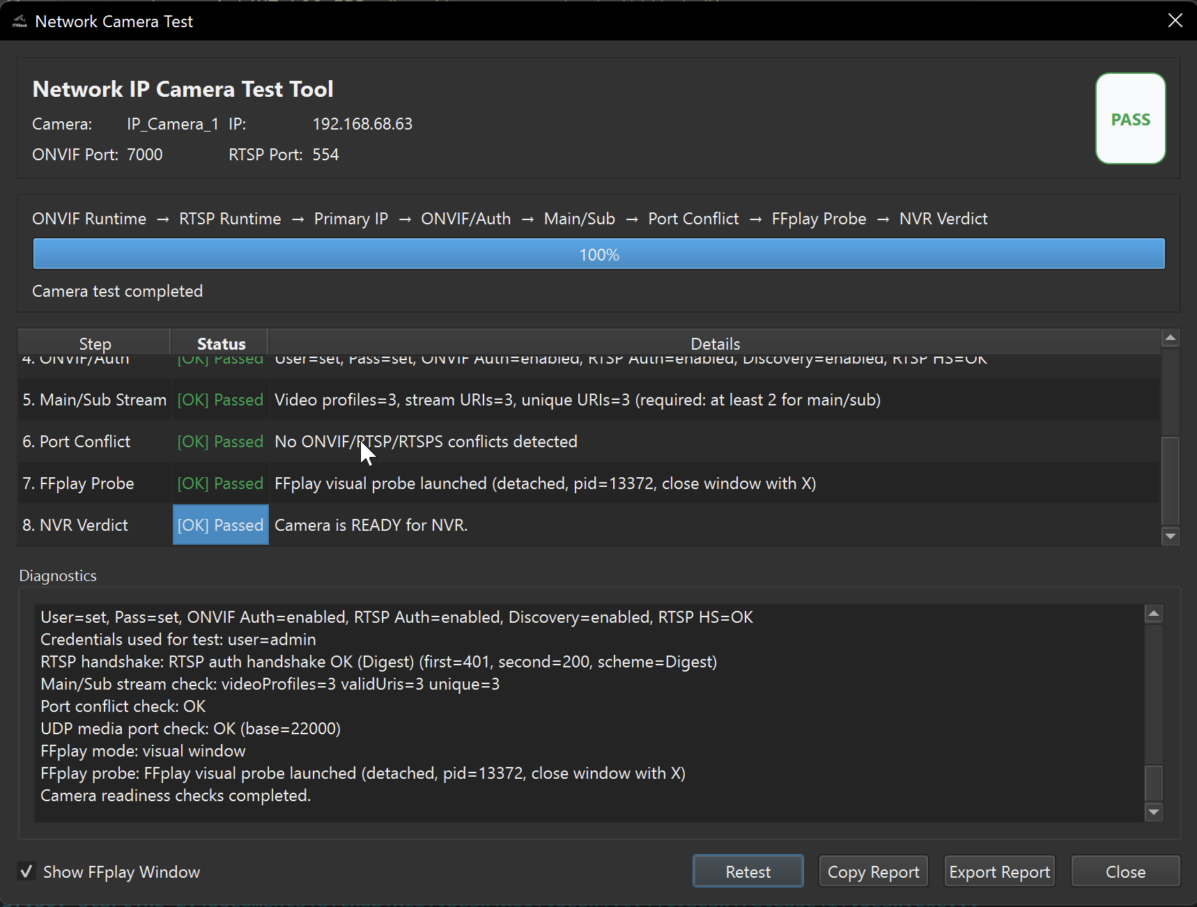 Network Camera Test (NVR Readiness)