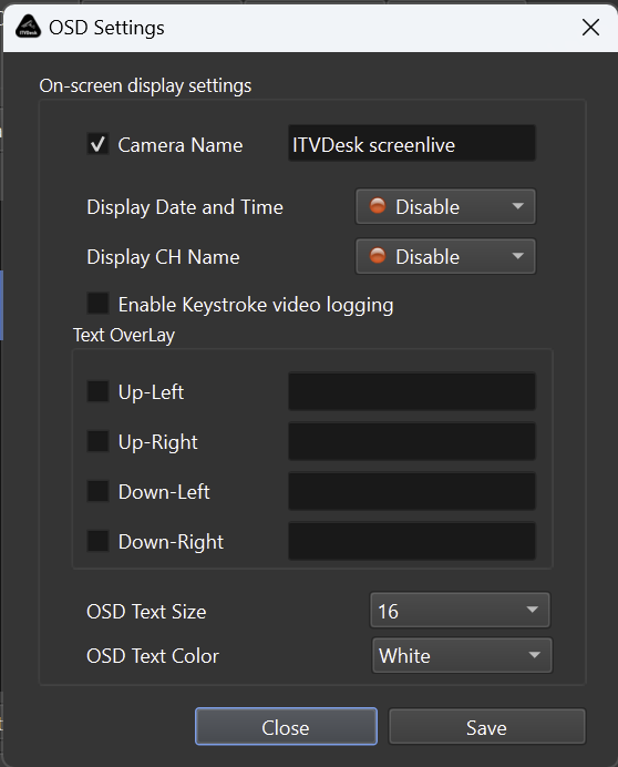 OSD Overlay allows you to display custom text and system information directly on the video stream.
