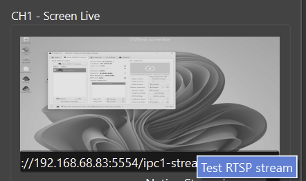 The Test Stream button allows local verification of the video stream.